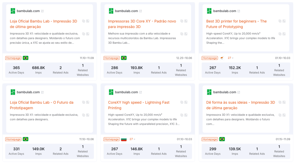 According to GoodsFox’s advertising intelligence, Bambu Lab’s global website bambulab.com currently ranks #107,289 worldwide in overall web traffic.