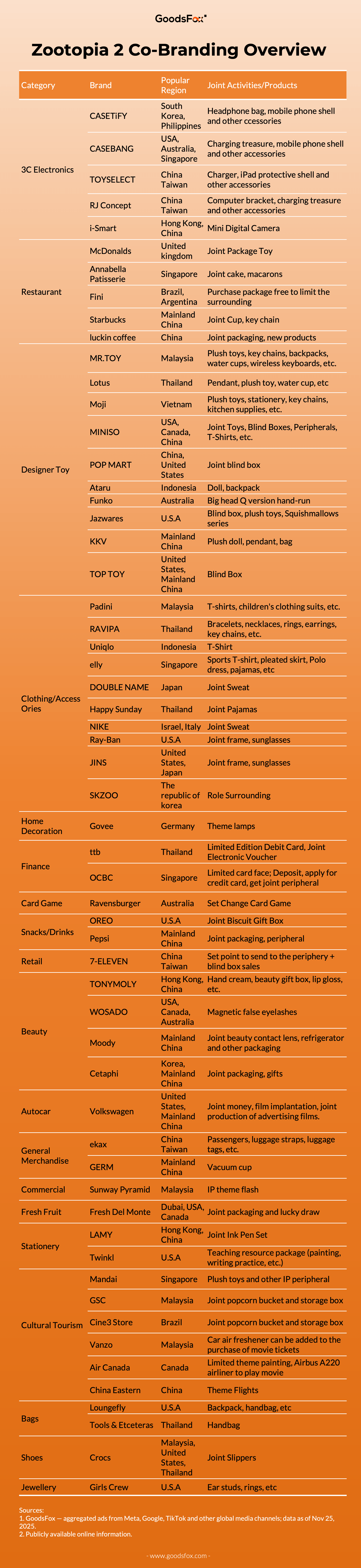 Source:GoodsFoxDozens of brands have launched partnerships even before the movie’s release.Why can Zootopia break cultural boundaries, appeal to different industries, and become one of the most “universal” IPs in global marketing?