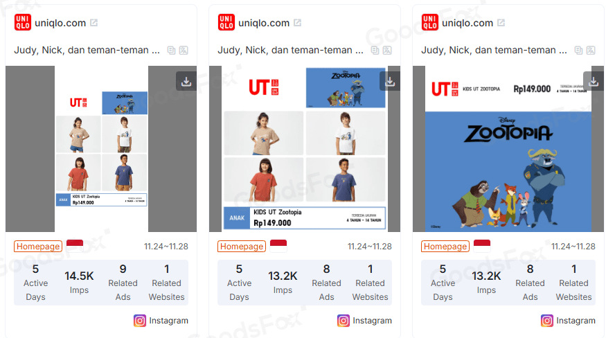 Inside GoodsFox, we see MINISO launching themed pop-ups across multiple markets, combined with aggressive ad campaigns.